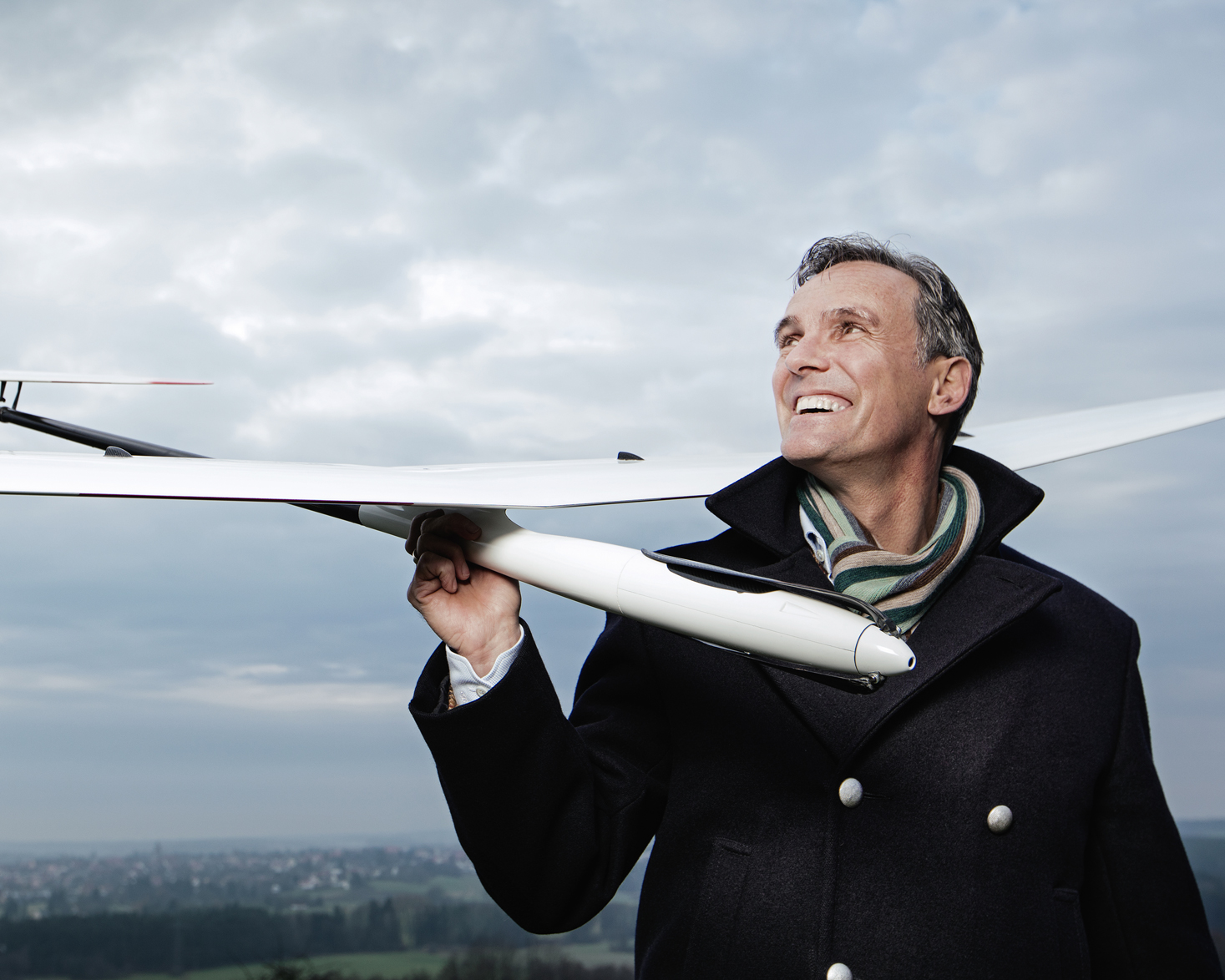 Am Himmel sind dunkle Wolken aufgezogen, ein kalter Wind weht über die hügelige Landschaft. „Meistens mache ich das in den Sommermonaten“, erklärt Thomas Hildebrandt, während er seinen Schal etwas enger zieht. Dann lässt er das windschnittige Modell eines Segelflugzeugs mit einer beträchtlichen Spannweite von mehr als vier Metern beinahe mühelos in den Aufwind steigen. Eines ist sicher: Mit Luftströmungen kennt sich Hildebrandt bestens aus, privat wie beruflich, wenn er an Simulationswerkzeugen für die Entwicklung moderner Strömungsmaschinen arbeitet. „Neben dem Triathlon ist die Modellfliegerei für mich der perfekte Ausgleich“, erklärt Hildebrandt. „Zeit für meine Freizeitaktivitäten zu finden, ist aber nicht immer ganz einfach. Da geht es mir wohl so wie vielen anderen.“